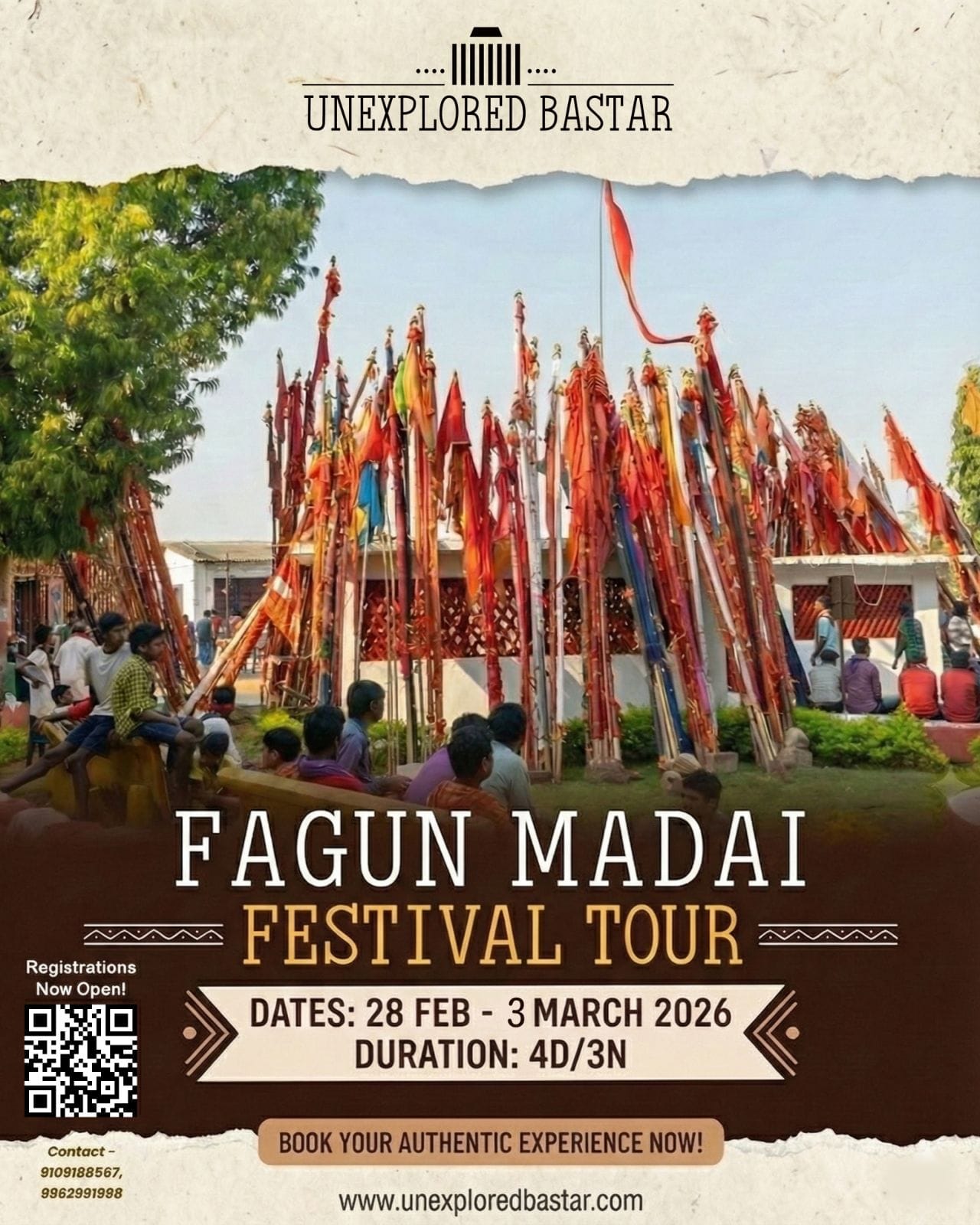 The Bastar Fagun Madai Tour offers an immersive 4-day cultural journey through Chhattisgarh's tribal heartland during the spectacular Fagun Madai festival. Experience authentic tribal traditions, witness sacred rituals at Danteshwari temple, explore ancient caves and waterfalls, and engage with indigenous communities while discovering Bastar's rich heritage and natural beauty.
